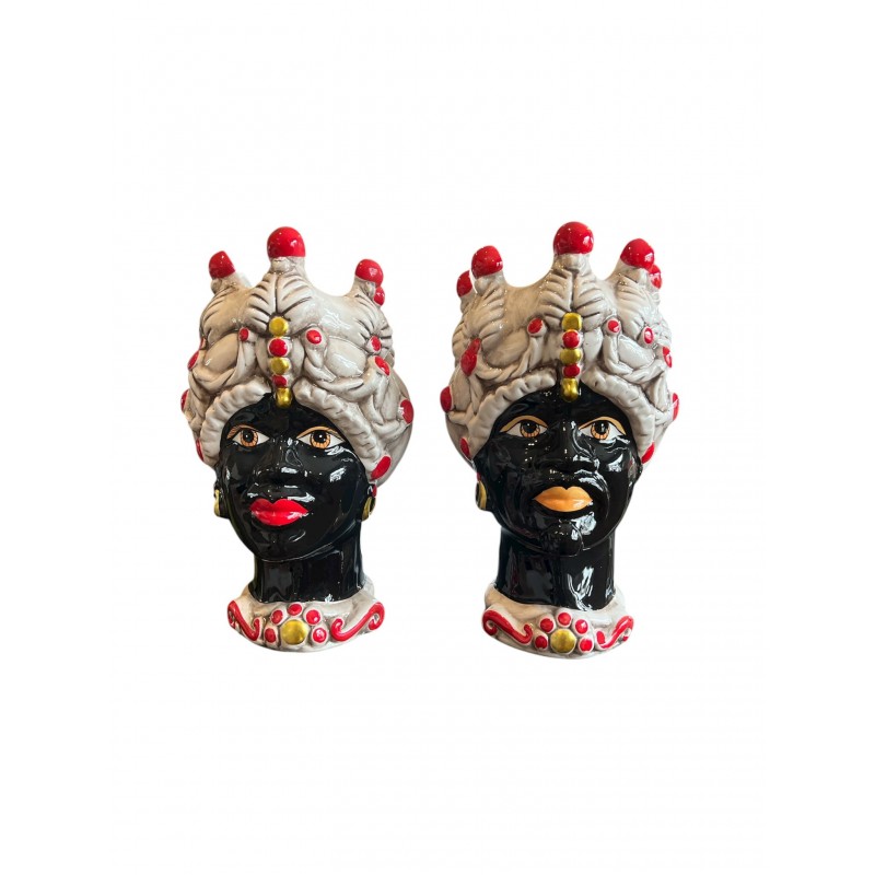Coppia Testa di Moro Dino Bianchi H 29 cm