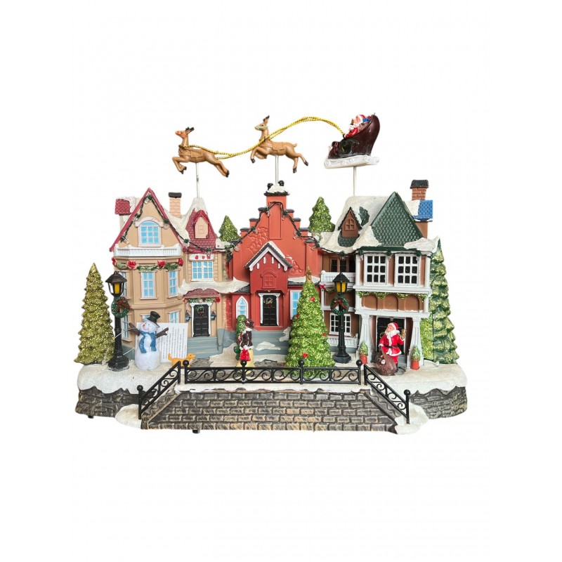 Villaggio con slitta 2 luci, movimento, musica