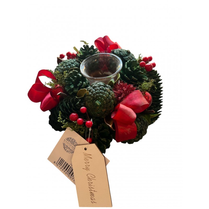 Centrotavola Portacandela pino , bacche e pigne d. Dino Bianchi