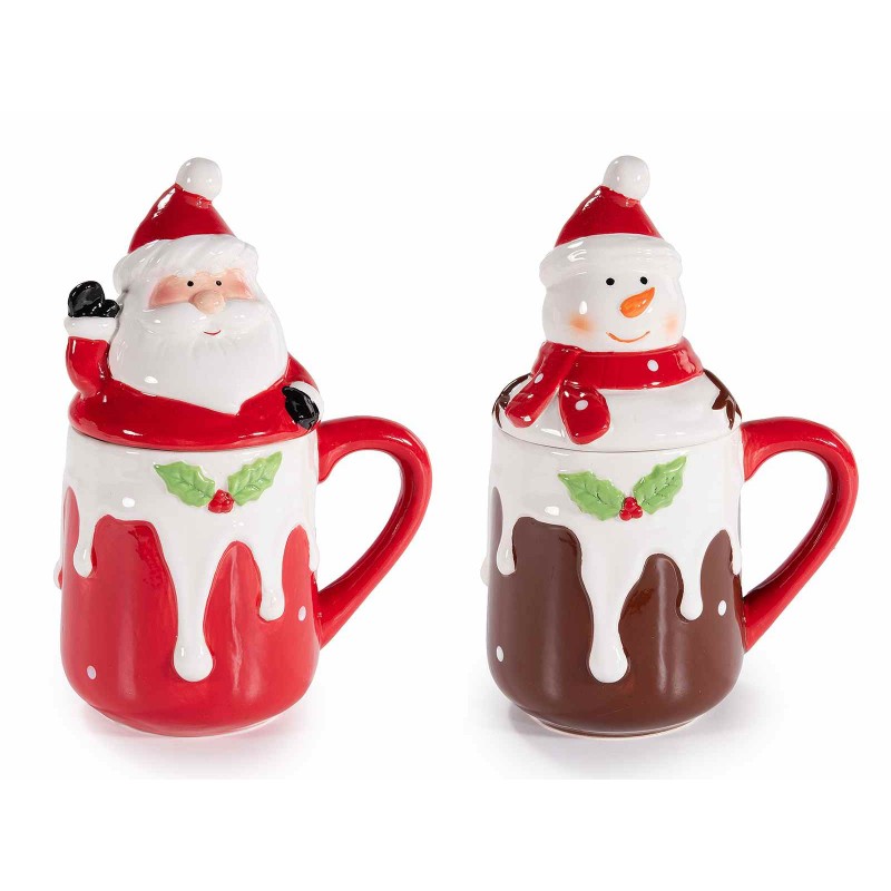 Tazza natalizia in ceramica 400ml con coperchio decorato
