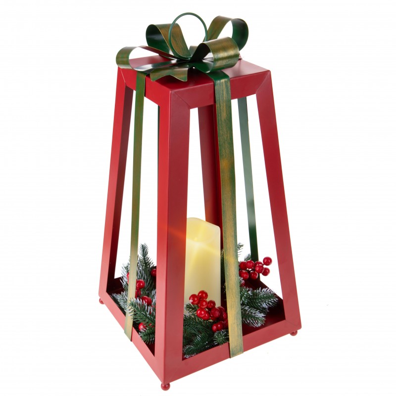LANT.NATALIZIA H.47CM C/FIOCCO E CANDELA RED/GREEN W/BRUSH GOLD DINO BIANCHI
