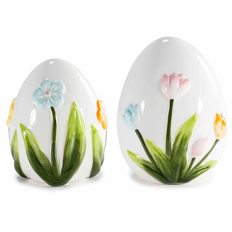Set 2 uova in porcellana con decori floreali in rilievo