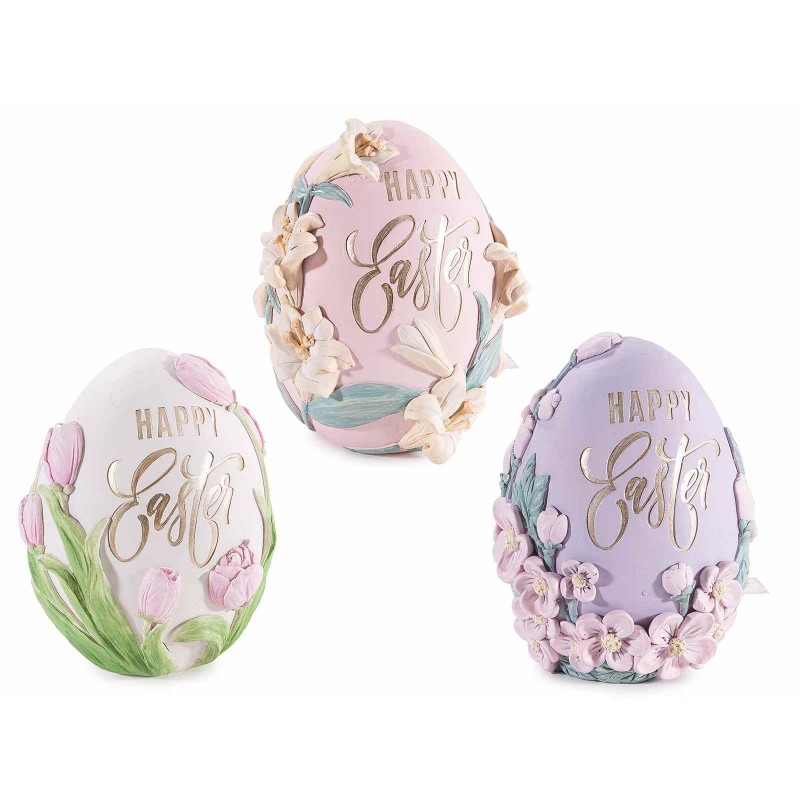 Uovo in resina scritta Happy Easter con fiori in rilievo