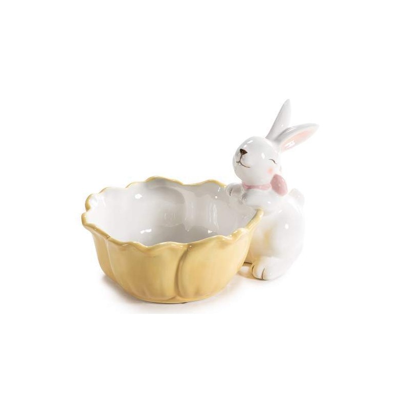 Cesto contenitore in ceramica colorata a fiore con coniglio